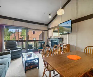 Bring the family! This classic condo sleeps 6 comfortably and offers a relaxed vibe with all the comforts of home. On the main level, there is an open plan living space with a bright kitchen and lots of light. Large windows and a slider to the deck look out onto the trees. The living room offers a flat screen TV, wood fireplace (firewood not provided) and dedicated Wi-Fi. There is a full bathroom on this level. The loft boasts two twin beds - perfect for kids! On the lower level the front bedroom offers a queen bed and a slider leading to the patio (accessible in the summer) and a secondary bedroom offers a California King bed. There is a full bathroom with a shower over tub and a full sized washer and dryer. Staying at this conveniently located condo, you can walk to any restaurant in the Bear Valley Village, shop, go to the Cross Country center for snowshoeing, sledding or cross country skiing; or catch the free shuttle to the slopes!