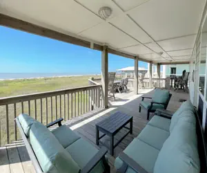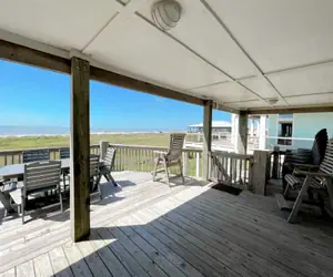 Amazing beachfront home with easy beach access, incredible views and loads of amenities. Large living, dining and kitchen space allows everyone to enjoy meals, movie night and quality time together. On the deck you will find outdoor furniture for lounging under covered area, deck chairs for soaking up the sun, table and chairs for outdoor dining or morning coffee, all while taking in the ocean air and expansive view of the Gulf! When you are ready to spend some time on the beach, you will appreciate the quick trip to the beach as this beachfront home is seconds from immediate beach access adjacent to the house. WiFi and Smart TV's in all bedrooms and Living room. On the ground level is plenty of parking, outdoor shower, grill and picnic table. Beaches Be Trippin' is the perfect choice for your Crystal Beach getaway!