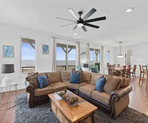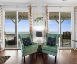 A Shore Thing 2; a beautifully decorated oceanfront duplex home; waiting for you to enjoy! Complete 2nd and 3rd levels of the building and is equipped with a private elevator. This unit features 6 Bedrooms and 4 Bathrooms, to accommodate groups as large as 20. If you need even more space, we also manage the downstairs 1st floor unit which sleeps 10 additional guests (A Shore Thing 1). The building has ample parking and a spacious backyard for BBQs, yard games or perhaps a formal wedding ceremony! There is plenty of space for that large family get together. Both units are pet and child friendly!