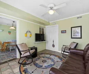 Amazing beach cottage retreat located within 2 short blocks to the beach. Featuring tile floors throughout with 2 large bedrooms and 2 bathrooms with walk-in showers. Cottage sleeps 7 with one King bedroom and a full/twin bunk in the second bedroom. Includes top grade linens and plush towels for the bedrooms. There is also a Queen sleeper sofa in the living area ($28 + tax for linens/towels for the sleeper sofa, or you may bring your own).
