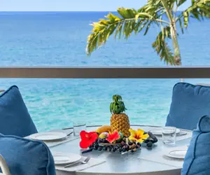 The Living Area has an indoor dining area and seating to enjoy Cable TV & Wifi High Speed Internet. Enjoy ocean views from the Kitchen, Living Room & Front Ocean Facing Bedroom that gives you direct access to the Corner Lanai!