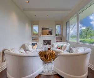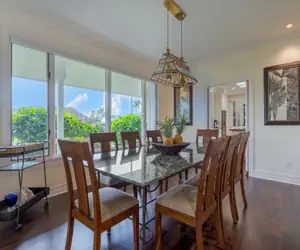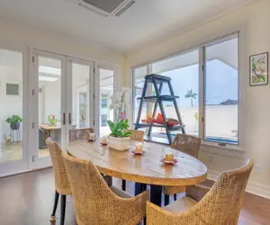 Step inside to an open layout offering a grand 3,881 square feet of interior space with an effortless flow between spaces. Floor to ceiling windows and sliding doors throughout the home create a pleasant indoor outdoor living experience with garden and mountain views and an abundance of natural light. A variety of appointed spaces provide cozy couches and comfortable nooks for relaxing with a book or planning your next excursion! An abundance of ceiling fans help to keep the home at a pleasant temperature and are ideal for circulating Kauai’s cooling trade winds, air conditioning location in the Master bedroom & lower living area. The chef of your group will be delighted with the expansive kitchen, thoughtfully designed with a center island with gas cooktop and complete with all new stainless steel appliances including, side by side refrigerator, double ovens, dishwasher, and wine fridge. Gorgeous marble countertops in the kitchen also match the adjacent dining room table top.