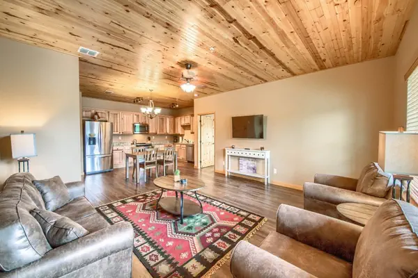 Comfortable seating in the living room with queen sofa sleeper, cable, Smart TV and Wi-Fi.