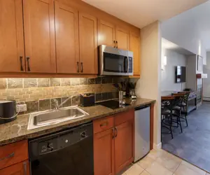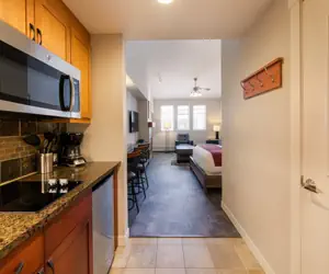 Perfectly appointed studio in Founders Pointe with luxury vinyl floors throughout the living and sleep area. The unit also has a kitchenette equipped with a glass cooktop, coffee maker, and microwave. The bedroom