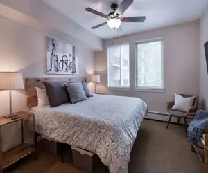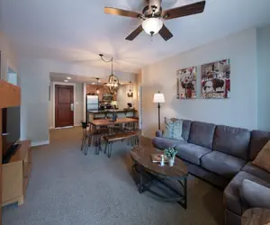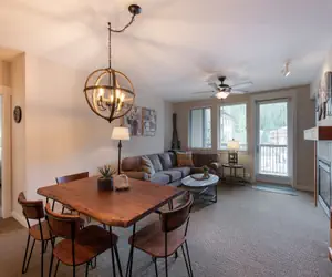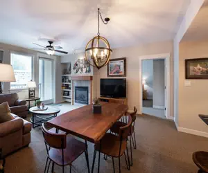 Cozy two bedroom two bathroom condominium with an oversize sofa to sink into at the end of the day and relax in front of the fireplace. The main bedroom has a king size bed with ensuite bathroom and the second bedroom has a queen bed, the living area has a sofa sleeper.