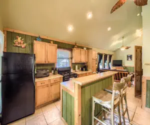 This cozy cabin, located just across the street from the Guadalupe River, boasts comfort and convenience with its well-appointed spaces, private washer/dryer, and great location. Bring your fur friends too!