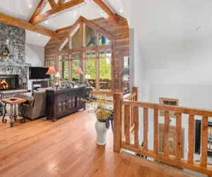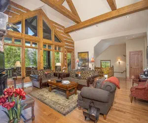 Warm and welcoming, the substantive stoned-hearth and gas fireplace usher you into a familiar and yet unpredictably charming oasis. This lavish lodge is fashionably designed in a mountain-mod decor, spacious and sparkling. There’s a large great room with vaulted ceilings and large wrap-around picture windows that boast spectacular views of Beaver Creek Mountain. Hardwood flooring throughout with artistically patterned area rugs, iron and leather accented furnishings that richly reflect the earthy tones of the great outdoors.