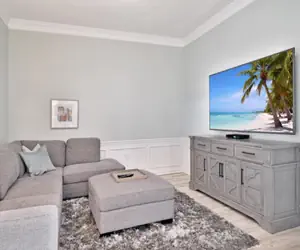 The fully equipped, top of the line kitchen allows the cook to chat with guests or keep an eye on the TV while preparing a quick snack or gourmet meal. All the comforts of home and more!