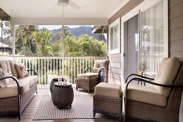 As you step into this home, you will be immediately welcomed by abundant natural light and a lovely, open floor plan which allows Kauai’s cooling trade winds to easily move between spaces. Contemporary decor and a calming color palette will offer you the vacation vibes you have been waiting for. The large, vaulted ceiling living room features comfortable furniture and access to two covered lanais, offering lounge furniture and a dining area, to enjoy your morning coffee or afternoon cocktail. The chef of your group will love the spacious kitchen offering ample counter space, modern appliances, lush views, and everything you need to prepare an island-style meal at home! Amenities include a gas burner stove and oven, microwave, toaster, dishwasher, and outdoor propane grill.