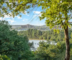 Beautifully situated atop the Bluff of the Guadalupe River, this extraordinary country house has been newly remodeled and equipped with everything you need for a dream vacation. There is an outstanding view from the house, yard, and a hot tub of the Guadalupe River. Features an adult tree house with built-in seating and bar.