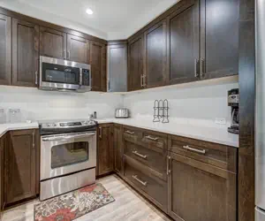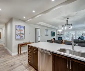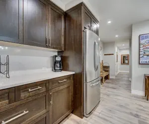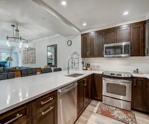 A newly renovated gourmet kitchen with stainless steel appliances will inspire family and friends to create delicious meals, while the stylish four-person breakfast bar is ideal for enjoying a tasty snack before a day on the slopes. There is a dining area for six guests and a warm and inviting living space where guests can watch favorite movies or warm up by the fireplace.