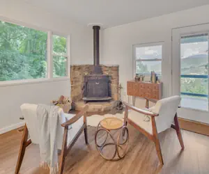 Enjoy a quiet mountain getaway in this newly furnished cabin with stunning views of the Smoky Mountains and quick access to the Blue Ridge Parkway, nature hikes, and beautiful waterfalls. On the deck, you'll be able to enjoy the stillness and serenity of nature while also being a quick 10 minute trip into town. Our home is nestled in the woods on nearly 2 acres of forest — you'll be surrounded by trees that offer a sense of seclusion and incredible views in any season from the deck and bedrooms. It's the perfect backdrop for toasting marshmallows on our firepit outside.