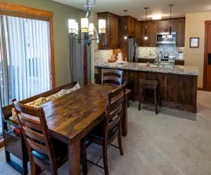 The stone and timber edifices bring a natural charm to the decor. These conveniently-located lodges are walking distance to the lifts and come with private balconies, gourmet kitchens, and gas fireplaces.