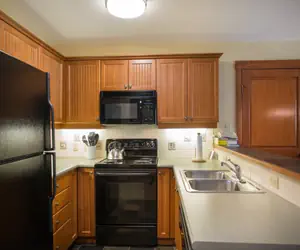 Stay in a Tuscan-style villa in the heart of the mountains. Eagle Springs Lodge East offers a cozy spot to relax and hang with friends and family after a day on the mountain. The stone and timber edifices bring a natural charm to the decor. These conveniently-located lodges are walking distance to the lifts and come with private balconies, gourmet kitchens, and gas fireplaces. One-, two-, and three-bedroom condominium-style floor plans are perfect for groups or those seeking a little solitude.