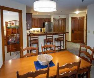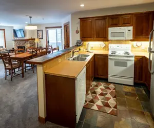 Accommodations at Powderhorn Lodge include one-, two-, and three-bedroom units, making it a great option for groups and families. Each unit features a fully equipped kitchen and gas fireplace.