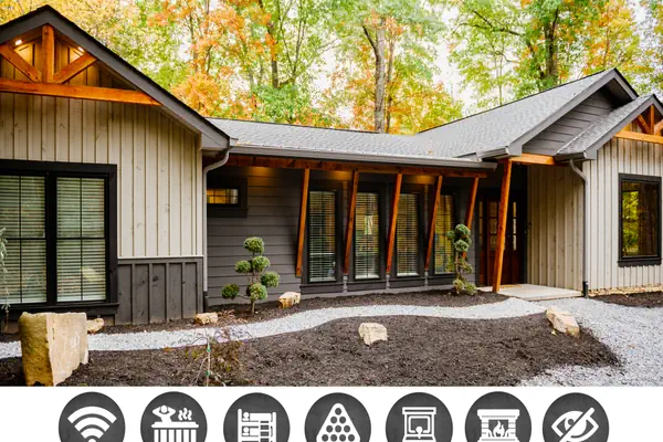 Escape to the heart of the Smoky Mountains at Bigfoot's Retreat, a cozy retreat in Gatlinburg, Tennessee! This charming 2-bedroom, 3-bathroom getaway sleeps eight guests comfortably and boasts modern amenities, including WiFi, perfect for staying connected and streaming your favorite shows. Unwind in the private hot tub, gather around the fireplace, or enjoy the scenic wooded views. The fully equipped kitchen and dining area provide ample space for gathering together for mealtime and entertaining. Challenge family and friends in the gameroom. With its convenient location, you'll be just a short drive from Gatlinburg's attractions, including Dollywood, Ober Gatlinburg Ski Resort, and the Great Smoky Mountains National Park. Come experience the ultimate getaway at this charming Smoky Mountain Retreat!