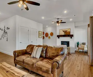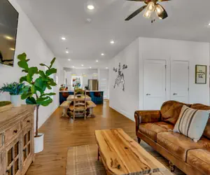 This property features a spacious living room with an electric fireplace and flat-screen TV. The fully-equipped kitchen offers all the amenities you need to make delicious meals, including a refrigerator, stove, oven, microwave, and dishwasher.