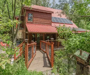 The outside is sure to please for entertaining! You will have access to a Fire Pit, Hot Tub, a park style Grill and a convenient red bridge that comes off of the porch and leads to a private hiking trail for nature lovers. Additionally, at the base of the driveway is a service road that leads into the mountain range just behind the cabin with miles of hiking available!