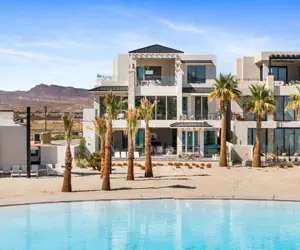 Welcome to The Beach Front, our luxurious beachside retreat in the heart of Southern Utah’s Desert Color oasis! Nestled along the white sands of a breathtaking 2.5-acre lagoon, this custom-built vacation home offers an unmatched getaway. Highlights include a private pool and hot tub, two fire pits, five elegant master suites, two spacious bunk rooms, multiple family rooms, and a gourmet kitchen with a wine cooler in the garage. Enjoy expansive outdoor living on the 1,500 sq. ft. patio and the stunning 1,700 sq. ft. pool deck, as well as a spectacular party deck. This one-of-a-kind desert beach escape awaits!