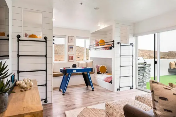 Ready to have some fun and relax? Then you’ve found the perfect vacation rental in Living the Dream! This condo sits in the highly sought-after Desert Color Resort community and will give you full access to all the incredible amenities they offer. This unit is family-friendly with lots of room to spread out over its 3 floors and rooftop deck. The teenagers will love playing on the Nintendo Switch, air hockey table, or the PacMan arcade game while the adults enjoy evenings stargazing on the private deck next to the fire table. A stroller is offered at this unit when you are ready to walk over to the incredible Shores Resort pool and Lagoon!