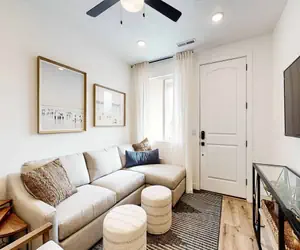 Fresh, clean, unique, and modern. This is what you will experience when you come to stay at Desert Memories. From the ground-level master and fully equipped kitchen to the 3rd floor roof-top deck and seating area, your family has all the room you need to stretch out, relax and truly get away from your everyday life. There are smart TVs throughout the rental and the 3rd-floor loft area features two bunk beds and a huge couch with a 4th TV ready to host the perfect movie night! You’ll find comfy beds and modern furnishings in each of the 3 bedrooms, and will be just a short walk away from the incredible Shores Resort and Lagoon.
