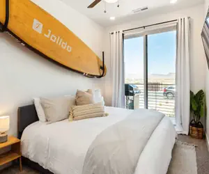 Come experience all the energy and fun at Desert Color while staying at Coconut Cove! This stunning condo is decked out with a beach theme, including usable paddleboards to take to the Lagoon with you. Throughout this unique rental, you’ll find three bedrooms, a loft area with more bunk beds, and a stunning rooftop patio deck that includes lots of outdoor seating and a beautiful cabana to escape from the sunshine.