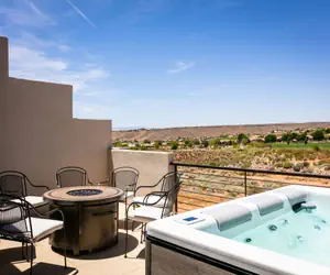 It is the only townhome in the neighborhood that has enough driveway space to privately park an additional car, in addition to the 1 car garage (important on those busy holidays). You have access to the pool, and spa at Town Center, plus you have a private balcony hot tub with a fire pit! Out on the balcony, you will also find patio furniture for you to lounge in and enjoy the beautiful view of Pine Valley Mountains and Red Cliffs National Conservation Area. The home is set in a great location close to many of Southern Utah's beautiful adventures.