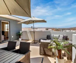 If you are looking for a vacation rental the whole family is going to love, look no further than Chillin Out Maxin at Desert Color! This great unit offers comfy furnishings, a stunning rooftop deck, and a 3rd level living space that includes arcade games, a tent, and a large couch that converts to a sleeper sofa! Each bedroom has a connected bath, and the kitchen is fully equipped with everything you’ll need. This home was designed with families in mind, and when it’s time to venture out, you’ll find yourself just a short walk away from The Shores Resort and its incredible resort pool and Lagoon!