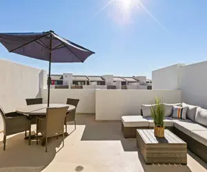 Adults and kids alike are going to find just what they are hoping for in a vacation rental when you stay with us at Red Rock Oasis. From the breathtaking rooftop deck with seating to the fully equipped kitchen, your group will be able to sit back and relax during your next getaway. The kids in your group will love using all the extra amenities provided, such as Spike Ball, Cornhole, and Kan Jam. After a long day playing and exploring, you can fall asleep in one of the many tastefully decorated rooms or the fun bunk room on the 3rd floor! Be sure to save time in your day to venture over to The Shores Resort to explore the Lagoon and the incredible resort pool!