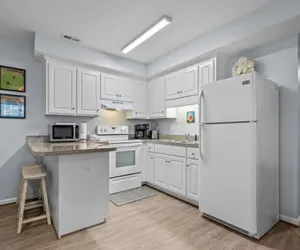Each of the two bedrooms is comfortably furnished with a queen bed, providing restful space for everyone in your group. The two full bathrooms are conveniently located and well-maintained, ensuring a comfortable stay for up to 6 guests.