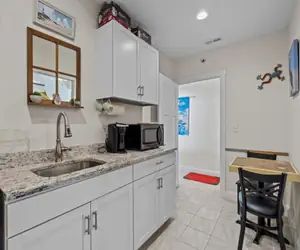 Welcome to Mi Faro B, a charming duplex on Harkers Island! This newly updated retreat offers 1 cozy bedroom with a comfortable queen bed and a modern bathroom. The spacious living area features a sleeper sofa, perfect for extra guests. The unit features a convenient kitchenette ideal for preparing light meals and snacks. Located just steps away from the renowned Fishhook Restaurant, you can savor fresh seafood and local flavors with ease. Mi Faro, meaning "lighthouse," serves as your beacon of relaxation and adventure, with nearby attractions like Cape Lookout National Seashore and Shackleford Banks. Experience island life and create lasting memories at Mi Faro B.