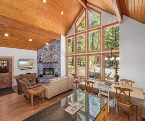 Welcome to Getaway Moose (STR Permit 000048), a warm and inviting mountain retreat designed for families, adventurers, and anyone craving a peaceful escape. Surrounded by towering pines and located in a community with snowmobile trail access, this charming home blends rustic elegance with modern amenities. Enjoy soaring pine-accented ceilings, a striking river rock fireplace, and expansive picture windows that bring the outdoors inside. With space for up to six guests and thoughtful comforts throughout, this home is your perfect basecamp for exploring Leavenworth, Stevens Pass, and the beautiful Plain/Lake Wenatchee area.