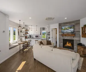 The open-concept living area is designed for comfort and easy lounging, featuring: