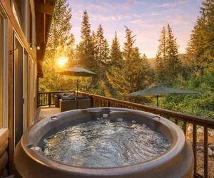 • Private hot tub on the wrap-around deck