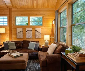 This thoughtfully curated cabin offers two cozy bedrooms: