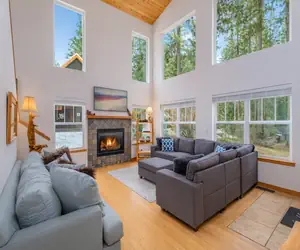 Tucked within the tranquil Ponderosa Estates community, Just Plain Getaway (STR 000352) is a beautifully maintained custom cabin by Graham Construction—designed for easy living and year-round relaxation. With 3 bedrooms, 3 bathrooms, and over 2,000 square feet of thoughtfully crafted space, this warm and welcoming retreat is perfect for families, couples, or small groups. Surrounded by towering pines and just minutes from the town of Plain, you’ll enjoy covered porches, a private hot tub, and inviting indoor-outdoor spaces to unwind, recharge, and reconnect—with your pup by your side.