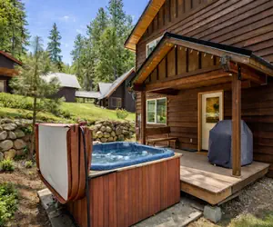 • Private hot tub nestled under the trees for peaceful soaking