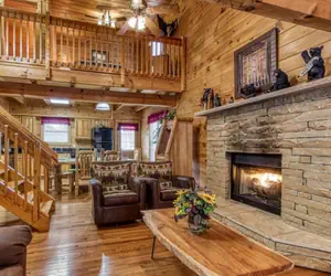 This beautifully decorated log cabin is conveniently situated near downtown Gatlinburg and the Great Smoky Arts & Crafts Community, offering nice mountain views.