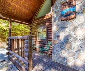 ER19, R19, Fryemont, is a generously designed two-story log cabin situated in a resort setting, featuring 3 bedrooms, 3 bathrooms. It includes a hot tub and is enveloped by a tranquil wooded landscape, nestled in a cul-de-sac that provides guests with a sense of seclusion.