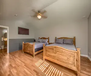 Nestled under towering oak trees directly off FM 306 sits this one-of-a-kind hidden compound composed of 4 main dwellings. These homes may be rented separately or together. Great for family reunions, weddings, and corporate retreats. Multiple fire pits near the pool can be used by all guests on site. Pull up a chair, get the fire going and enjoy roasting some hot dogs or delicious smores. The inground pool is the ultimate relaxation after a long day. Take in the sunsets while enjoying a beverage and listening to the waterfall feature from the hot tub. And best of all you can bring your fur friends!!
