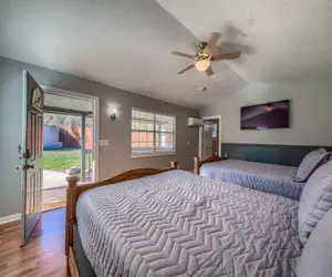 This quaint 1 bed/2 bath unit is perfect for a small family or traveling couple. With over 1500 sq ft of space, 2 Queen size beds, a sofa sleeper in the living room, wall mounted HDTV, high speed Wi-Fi, coffee maker, oversized bathroom and covered front porch, Quiet Your Mind is a comfy and cozy home away from home. Brand new kitchen and living room! The bedroom has an en suite full bath, guest bath is off the kitchen. Professional photos coming soon! Fenced in area with a charcoal grill behind this home for your fur friends!