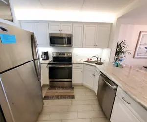 This beautiful newly renovated Oceanfront 2 bedroom / 2 bath flat has enough to sleep six. It is furnished with a king, two twins and a full size Murphy bed. Granite counter tops with stainless steel appliances. There are three TV's with Digital Preferred Package, and a DVD player for your viewing pleasure. Tile floors throughout which makes it cool for summer and easy clean up from sand. There is a charcoal grill so our guests can enjoy grilling out at your own unit. At Summerhouse we have 4 temperature regulated pools to choose from on property making it comfortable to swim all year round! There are also four tennis courts, two racquetball courts and pickleball courts. We have two grilling areas and two playgrounds for the kids conveniently located at either end of the property. Our common area around the pools are covered with luscious well-maintained grass with a short walk to the beach.
