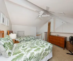 • Spiral staircase to the upstairs bedroom with twin beds