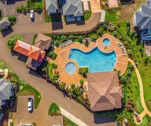 Pili Mai was built in 2019 and features plantation-style design, cobblestone drives, tropical gardens, a large swimming pool, a children's pool, spa, and an air-conditioned fitness room. It is nestled between Kiahuna Golf Club and the beautiful Poipu beaches: just 1 mile to Kiahuna Beach, 1.2 miles to Brennecke's Beach, 1.8 miles to Lawai Beach, and 2 miles to Shipwreck Beach.