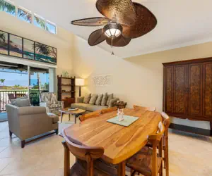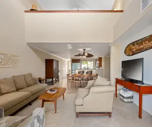 This home is decorated in island style and has an open-plan living area that leads to a lanai with a built-in gas grill and wet bar. Take in the views of the golf course and the lushly landscaped surroundings over your morning cup of Kona coffee or while grilling dinner in the evenings.