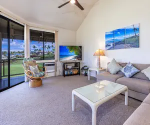 Gaze at sunsets across the expanse of the 7th fairway and see an occasional deer scampering across the lawn in the early hours of the morning. Relax on your own private lanai and feel the wonderful trade winds sweep across the greens and take in the aroma of the beautiful Plumeria trees and Hawaiian foliage. If you are looking for a perfect getaway in paradise, this is it!