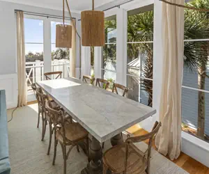 Elevating the main living space to the second floor gives the benefit of wonderful views over the coastal dunes and out to the Gulf, easily seen from the balcony, living area, and dining area. It will be difficult to pry yourself away from the views. The large balcony has plenty of seating for your guests and a dining table for those mornings you want to greet the day with a warm cup of coffee or those evenings you get the urge to dine al fresco. The living area's modern feel is the perfect space for a fun family game or movie night. The dining table seats six and is open to the living room. The windows throughout the living and dining areas welcome in plenty of natural light to remind you of what's waiting outside. The galley kitchen with its stainless steel appliances has everything you'll need to prepare a full meal or whip up a quick snack.