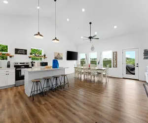 Majestic on Table Rock - Right in the middle of all the splendor and beauty the Ozarks have to offer, this Majestic 5 Bedroom Home sits above and overlooks Table Rock Lake!! Bring your family or large group of friends to enjoy a relaxing vacation in Branson! This home is close to the State Park Marina and Silver Dollar City, but away from the hustle and bustle of Branson! This beautiful home overlooks Table Rock Lake and is perfect for your next family getaway. Enjoy spending time by the shared swimming pool, taking in the views from the private back deck, or just hanging out together. You have all the comforts of home in this enchanting vacation rental, with all the regal sophistication you could ever ask for. Take a deep breath full of clean, mountain air as you step out on the back deck with a freshly brewed cup of coffee. Make a delicious meal together in the luxurious island kitchen as you discuss all the fantastic ideas you have for spending your day. Take a seat in the living area as you catch up on all your favorite TV shows and laugh together!