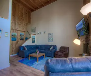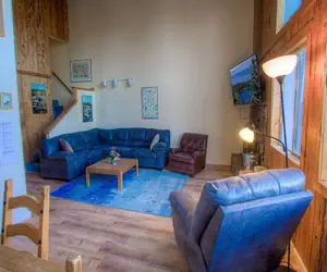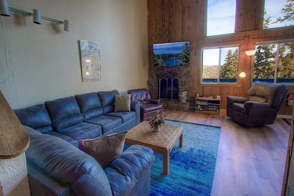 Situated on the third floor, this condo requires a climb up several steps, but the effort is well worth it. Inside, you'll find a spacious living room with a huge TV and a cozy wood-burning fireplace, along with windows showcasing magnificent mountain views. The dining area comfortably seats six.