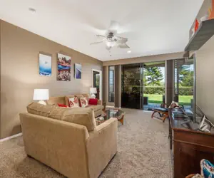 The primary off-living area has a king bed and smart television for your convenience. Enjoy being able to have your lanai doors open and enjoy the Hawaii air. You can soak away the sun in your size-able stand-alone bathtub or rinse in the separate tiled shower.